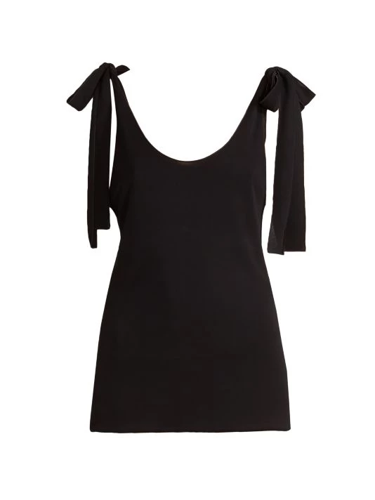 Founded in 1952 by Gaby Aghion, Chloé was established as an alternative to couture, appealing to the empowerment of women. From Creative Director Gabriela Hearst, this collection resonates with the tradition of the French house’s free-spirited identity with flowing fabrics, whimsical patterns, and boho-style designs. Sleeveless top with self-tie tank straps and a plunging scoop neckline.