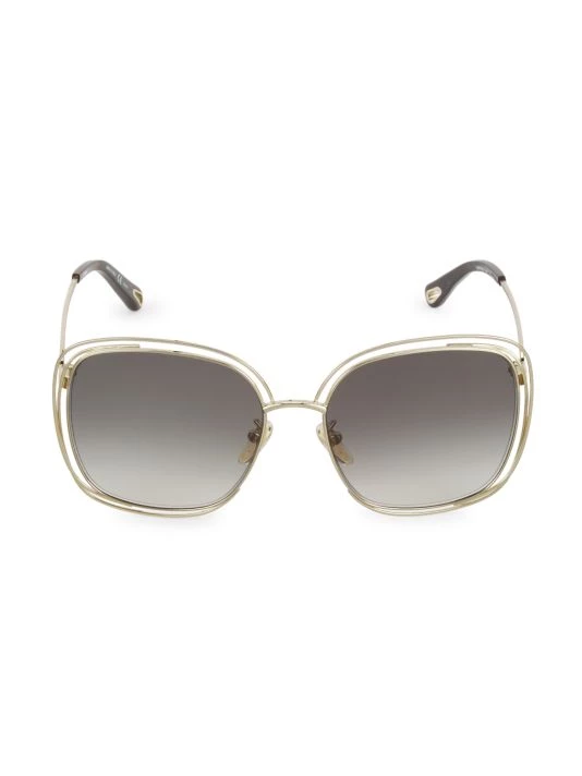 Oversized square frames define these metal sunglasses, finished with etched logo at temples.