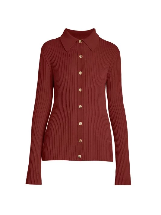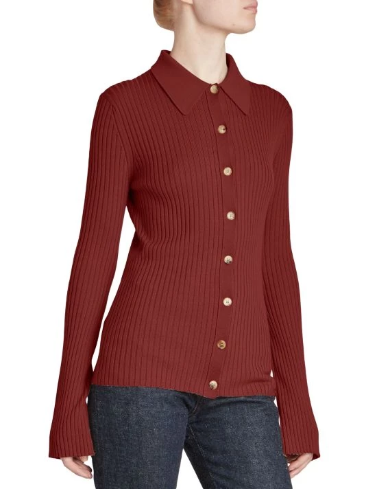 Chloé’s collection puts an emphasis on reducing the negative impact of the fashion industry with the use of botanical dyes. Gabriela Hearst pays homage to the French house’s legacy through puff sleeves, oversized silhouettes, and mixed knits infused with the designer’s equestrian and boho-inspired looks. Knit from cozy wool and cashmere, this formfitting top boasts textured ribbing and contrast button closures.