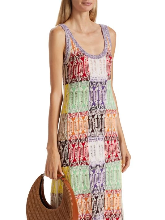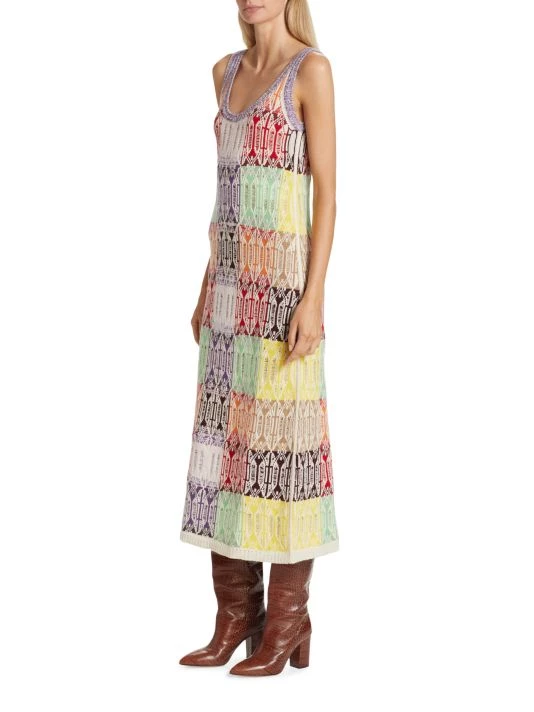 Chloé’s collection puts an emphasis on reducing the negative impact of the fashion industry with the use of botanical dyes. Gabriela Hearst pays homage to the French house’s legacy through puff sleeves, oversized silhouettes, and mixed knits infused with the designer’s equestrian and boho-inspired looks. This knit midi-dress is designed in a sleeveless style with an eye-catching colorblocked design.