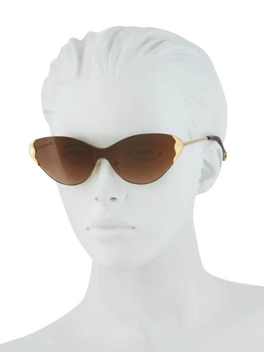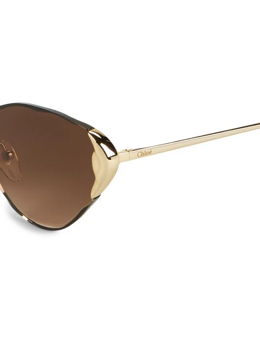 Sleek cat eye sunglasses feature rimless lenses accented with metal tips, and Chloé signature on the temple with drop-shaped opening trimmed with metal.