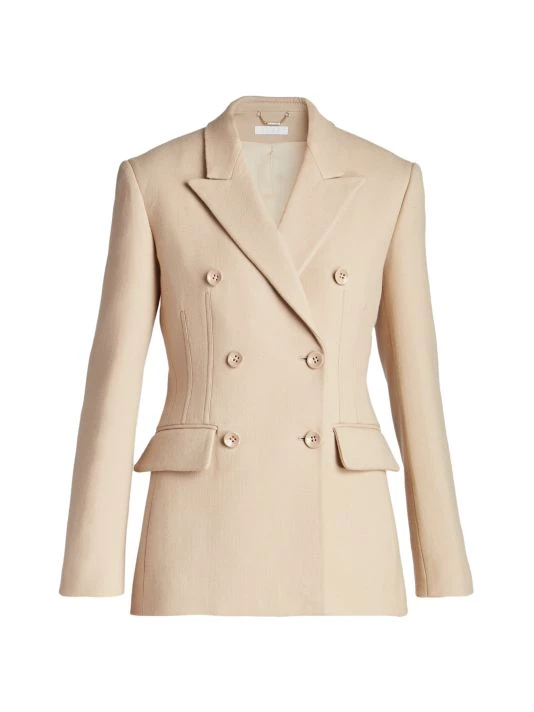 Crafted of a luxe wool, Chloé’s double-breasted blazer is elevated by textured piping at the front.