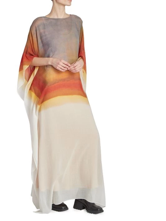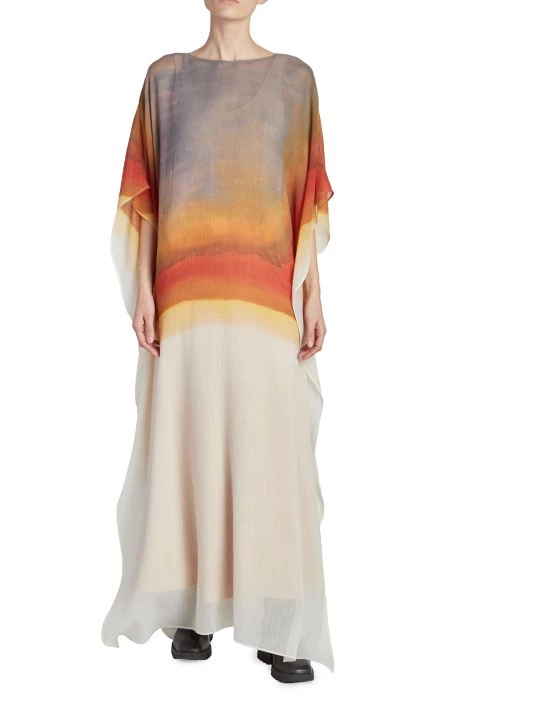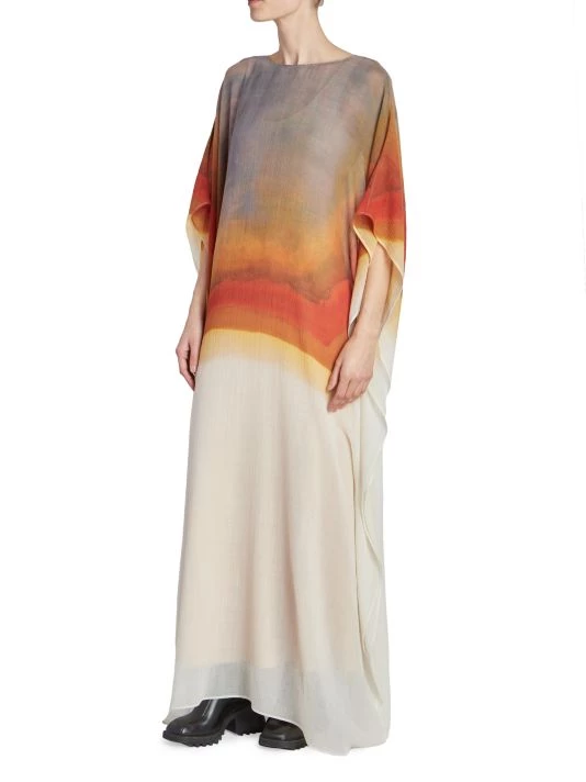 Chloé’s collection puts an emphasis on reducing the negative impact of the fashion industry with the use of botanical dyes. Gabriela Hearst pays homage to the French house’s legacy through puff sleeves, oversized silhouettes, and mixed knits infused with the designer’s equestrian and boho-inspired looks. Woven from luxe wool, this maxi dress is defined by painterly gradient patterning and dimensional draped sides.