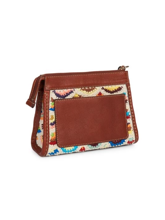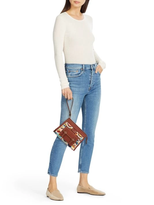 The Edith small pouch is a compact, zippered accessory revealing sophisticated leather craftsmanship with multicolor scalloped knit details.