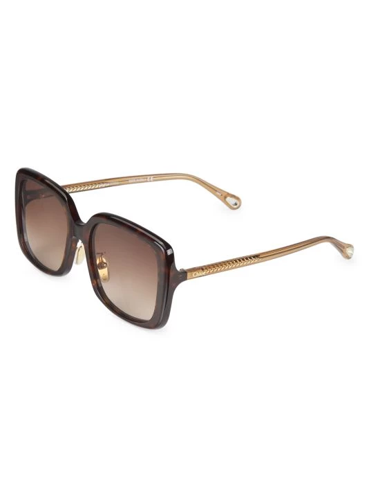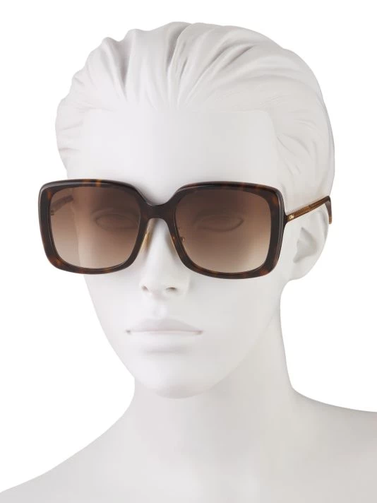 Polished square frames and transparent temples with braided metal corewire defines these sunglasses.