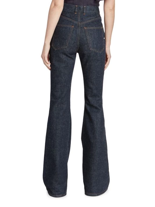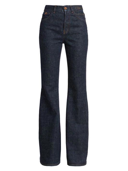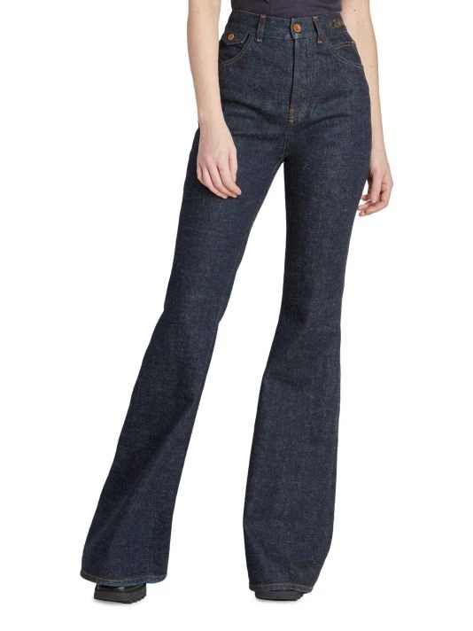 Chloé’s collection puts an emphasis on reducing the negative impact of the fashion industry with the use of botanical dyes. Gabriela Hearst pays homage to the French house’s legacy through puff sleeves, oversized silhouettes, and mixed knits infused with the designer’s equestrian and boho-inspired looks. Boasting a flared-leg, these high-waisted jeans offer contrast logo topstitching at waistband.