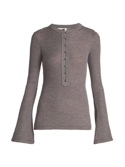 Chloé’s long-sleeve wool Henley top is defined by textured ribbing and a hook-and-loop button placket.