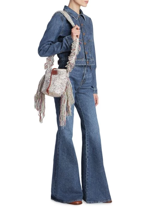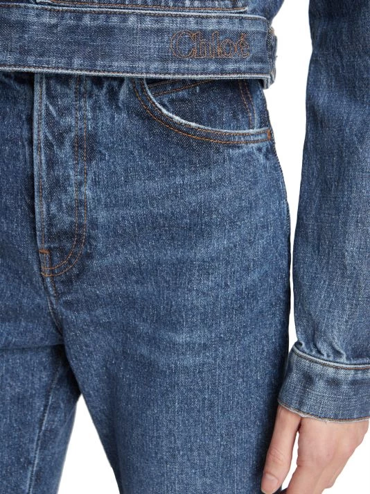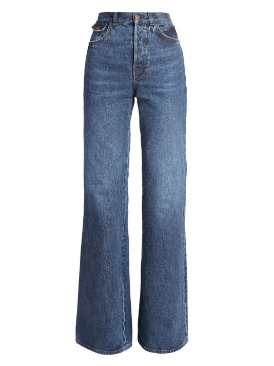 Chloé’s collection puts an emphasis on reducing the negative impact of the fashion industry with the use of botanical dyes. Gabriela Hearst pays homage to the French house’s legacy through puff sleeves, oversized silhouettes, and mixed knits infused with the designer’s equestrian and boho-inspired looks. Boasting a flared-leg, these high-waisted jeans are enhanced by contrast logo topstitching at waistband.