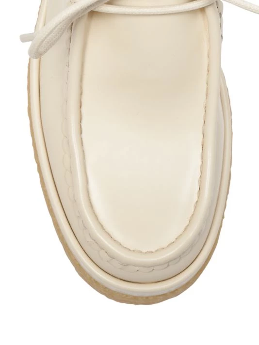 Resting on a crepe platform sole, Chloe’s Jamie ankle boots are detailed with a scallop edged apron toe.