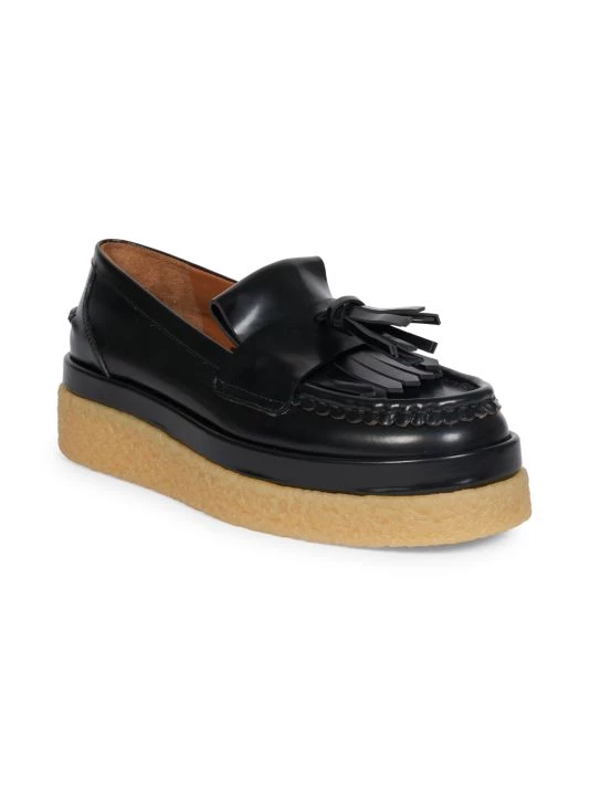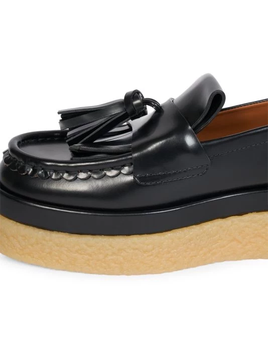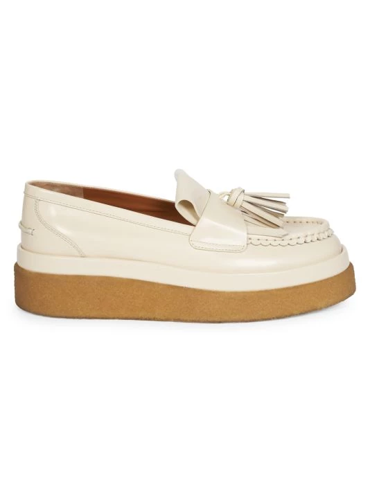 Resting on a crepe platform sole, Chloe’s Jamie loafers are detailed with stitched apron and tassels..
