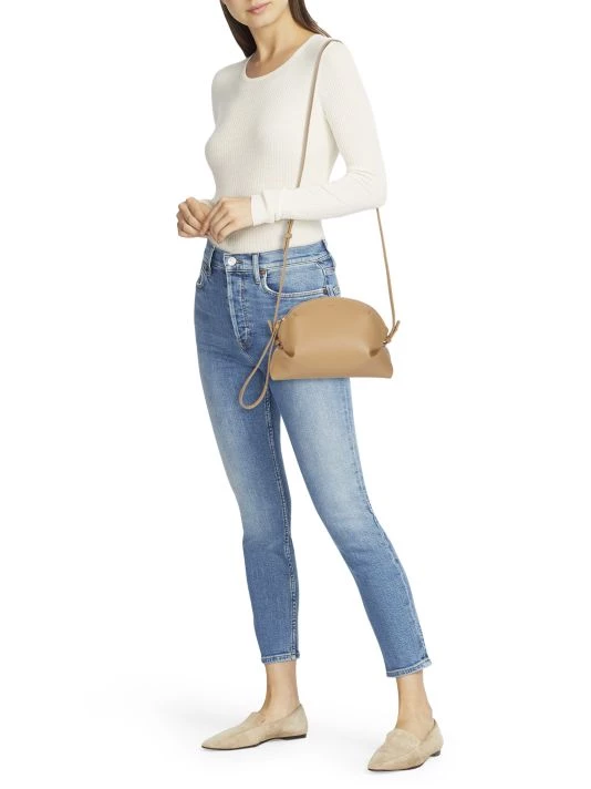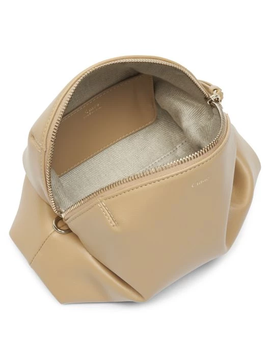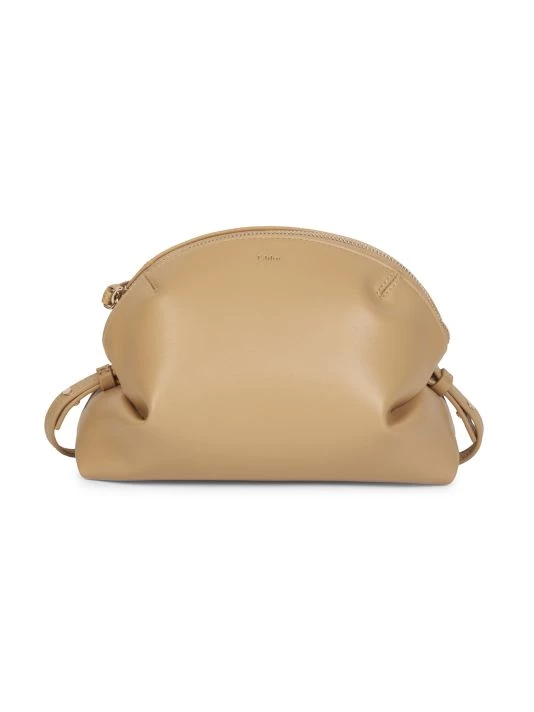 Rendered in smooth leather, this dome-shaped crossbody bag flaunts tucked sides, finished with foil stamped logo at front.