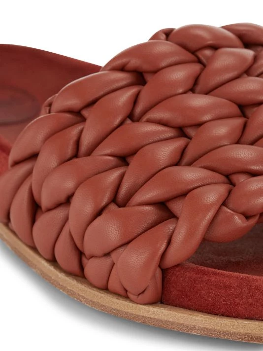 Mounted on a suede molded footbed, these slides are topped with chunky braided leather straps.