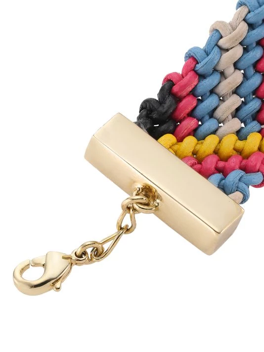 From the Kyn Collection. Crafted of multicolored woven leather, this vibrant bracelet secures with a polished goldtone lobster clasp accented with a ‘C’ charm.