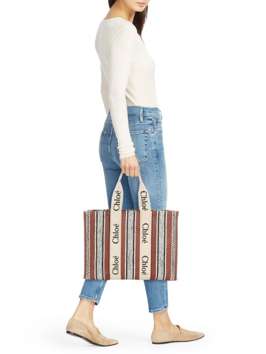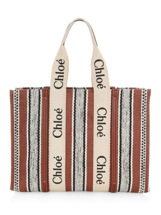 From the Woody Collection. This linen tote sports signature grosgrain logo tape.