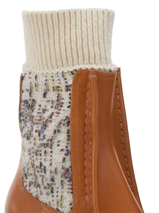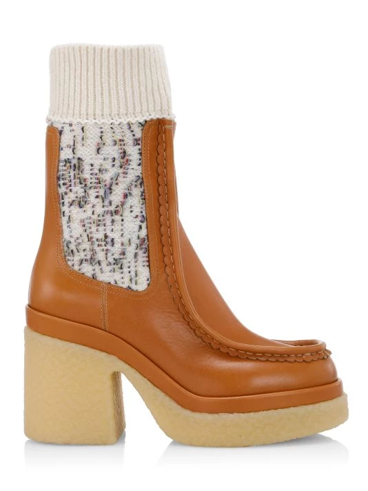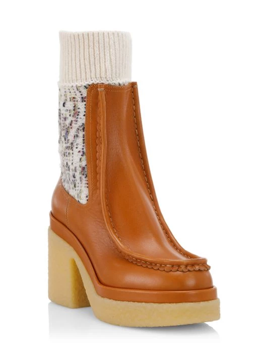 Chloé’s leather ankle boots are crafted with a cashmere-blend sock style and a platform sole.