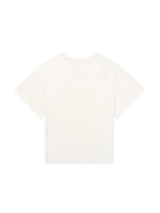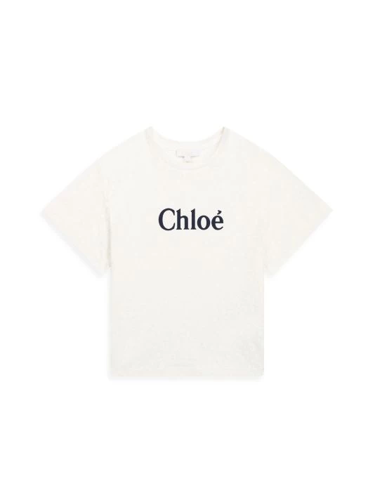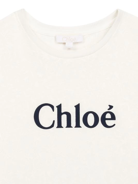 A jersey T-shirt is adorned with a discreet floral print with a “C” signature and a large Chloé logo.