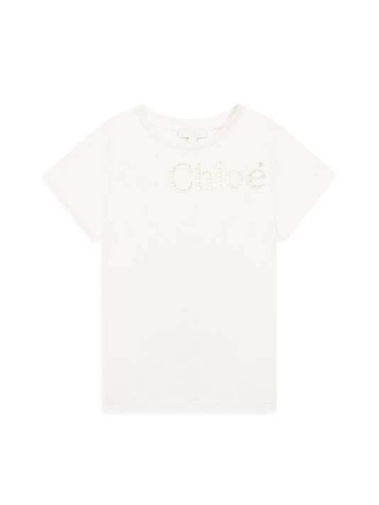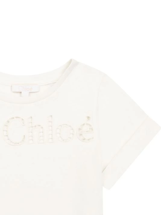 This jersey T-shirt features rolled-up sleeves and a large perforated Chloé embroidery on the front.