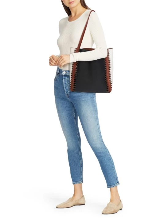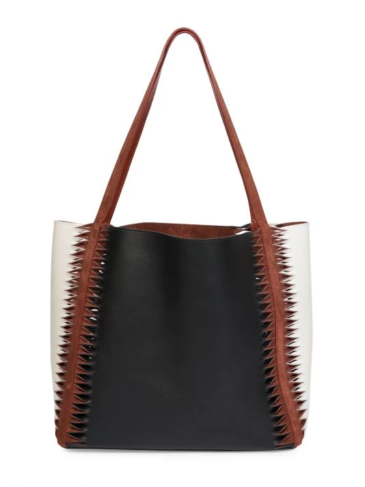 Made in Italy, Chloé’s Louela tote is crafted of colorblocked leather and suede with twisted panels.