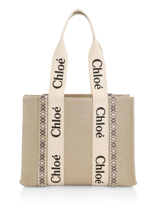 From the Woody Collection. This canvas tote is finished with signature logo tape and geometric-printed trim.
