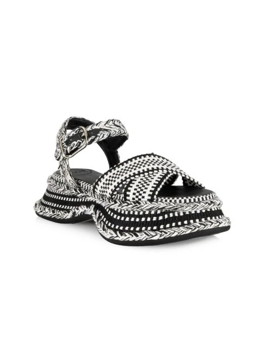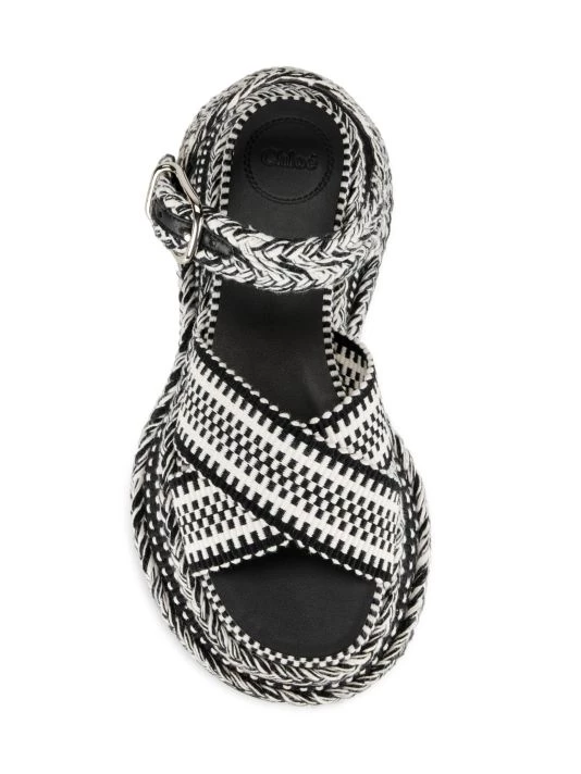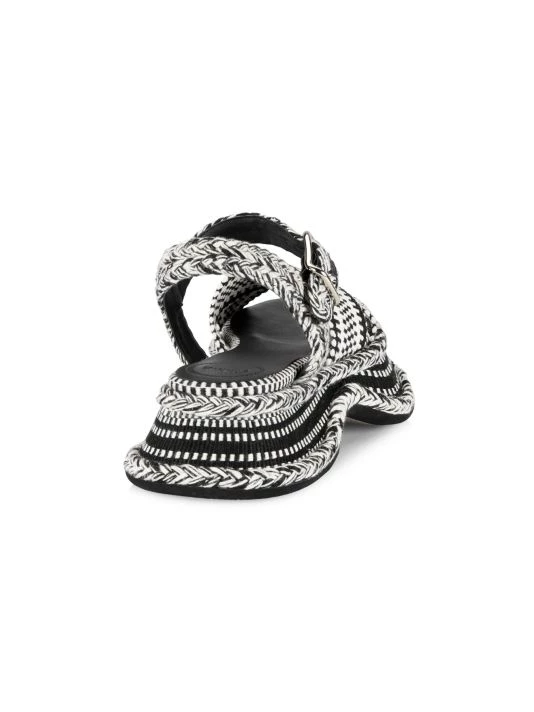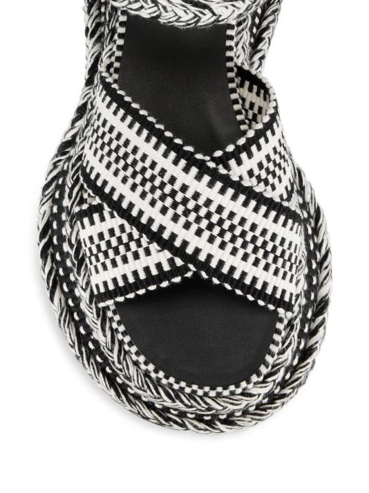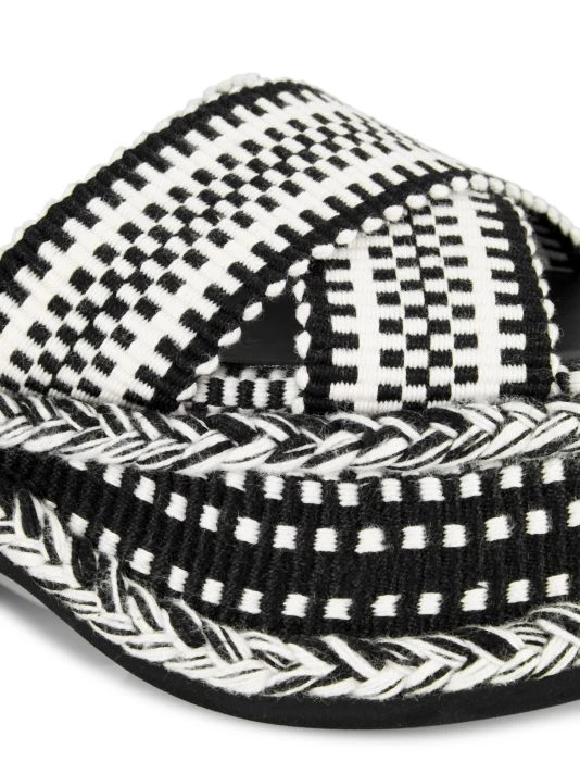 Crafted of multicolored cotton in a chunky platform structure with wavy lines, Chloé’s Meril sandals epitomize a vibrant summer attitude.