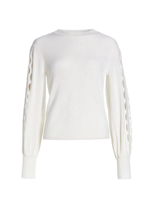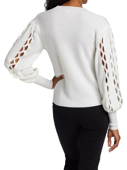Feminine puff sleeve pullover with a rich wool knit and classic ribbed trim.
