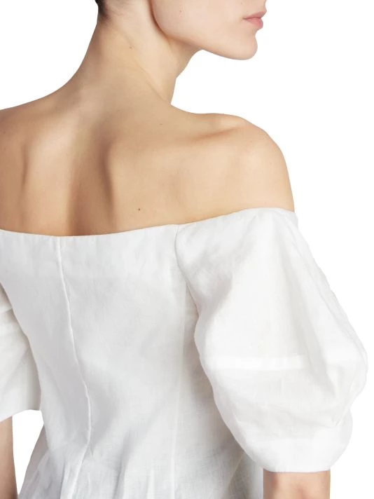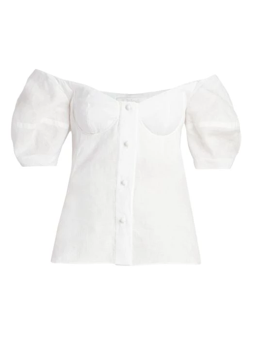Chloé’s collection puts an emphasis on reducing the negative impact of the fashion industry with the use of botanical dyes. Gabriela Hearst pays homage to the French house’s legacy through puff sleeves, oversized silhouettes, and mixed knits infused with the designer’s equestrian and boho-inspired looks. Woven from luxe wool, this off-the-shoulder blouse is complete with a structured sweetheart neck.