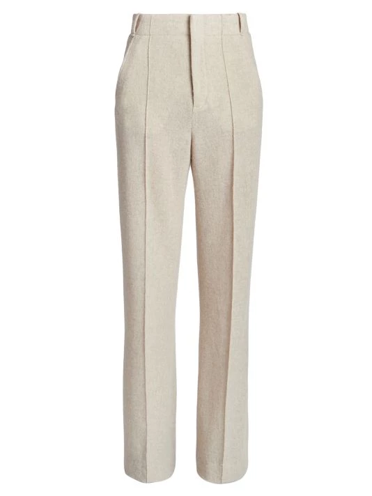 Chloé’s collection puts an emphasis on reducing the negative impact of the fashion industry with the use of botanical dyes. Gabriela Hearst pays homage to the French house’s legacy through puff sleeves, oversized silhouettes, and mixed knits infused with the designer’s equestrian and boho-inspired looks. Cut in a wide-leg silhouette, Chloé’s pleated high-rise trousers are crafted of a wool and cashmere blend.