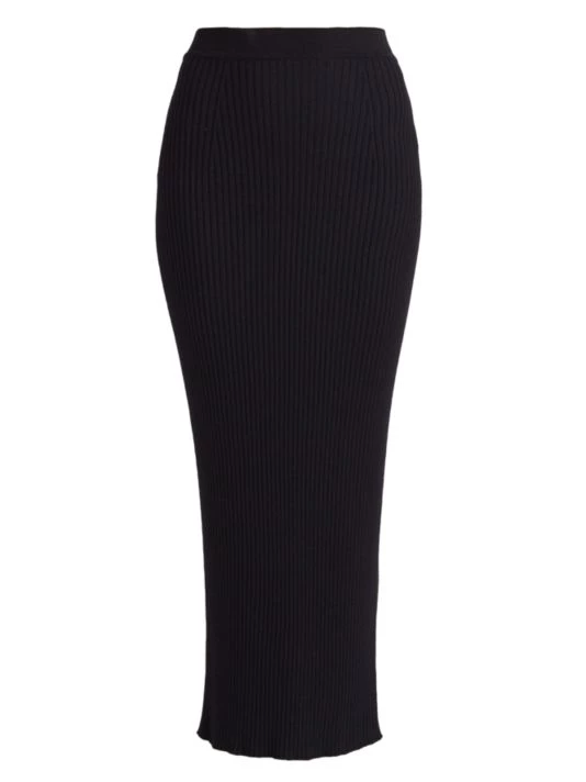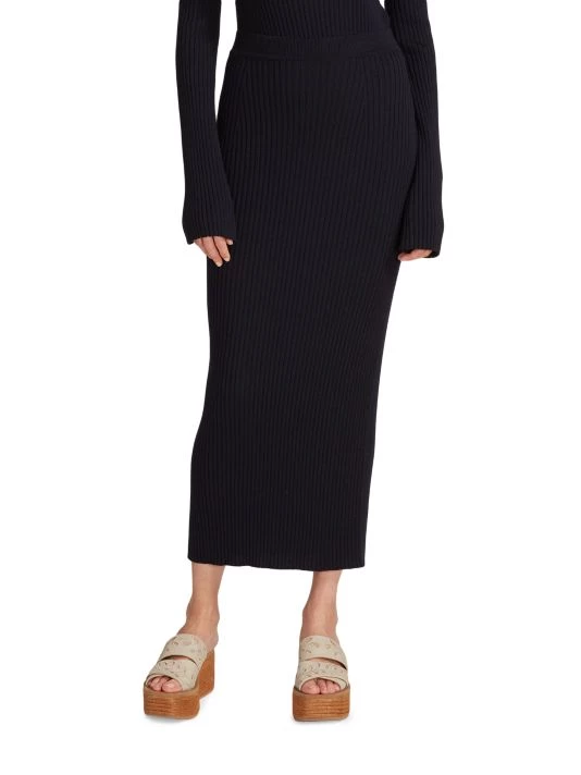 Founded in 1952 by Gaby Aghion, Chloé was established as an alternative to couture, appealing to the empowerment of women. From Creative Director Gabriela Hearst, this collection resonates with the tradition of the French house’s free-spirited identity with flowing fabrics, whimsical patterns, and boho-style designs. Wool midi-skirt in a body-con silhouette with mixed rib knitting.