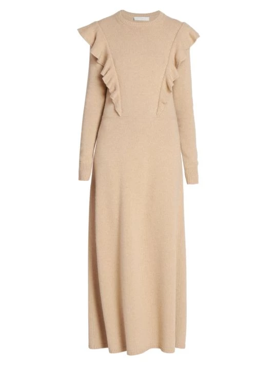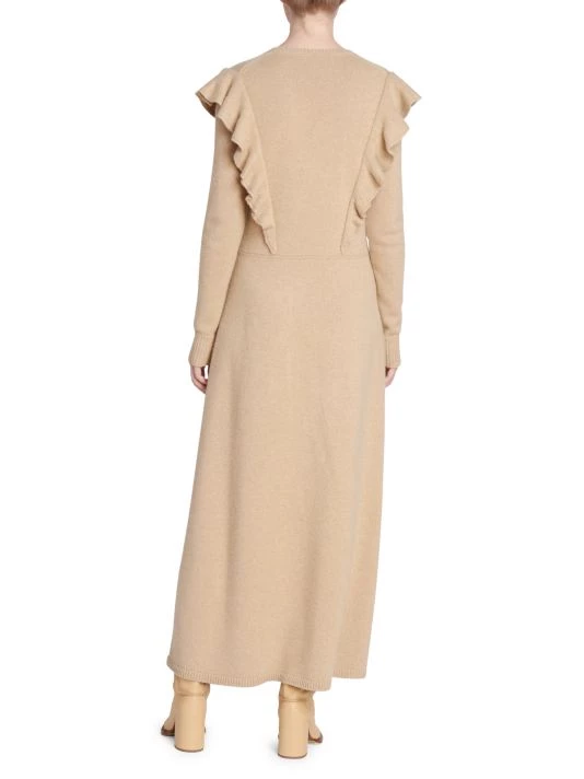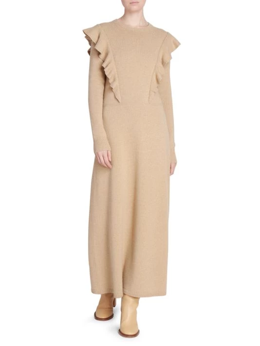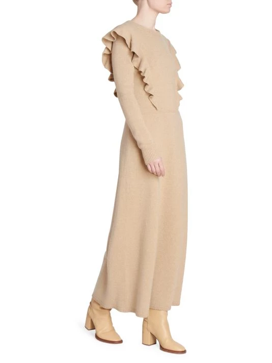 From the debut collection of the newly appointed Creative Director, this season was inspired by archival elements of the storied French house melded with bold knits influenced by Gabriela Hearst’s Uruguayan heritage. Flaunting romantic ruffle trim, this cashmere maxi dress is finished with a seamed leather waist.
