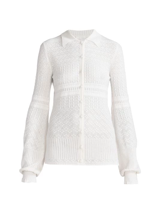 Founded in 1952 by Gaby Aghion, Chloé was established as an alternative to couture, appealing to the empowerment of women. From Creative Director Gabriela Hearst, this collection resonates with the tradition of the French house’s free-spirited identity with flowing fabrics, whimsical patterns, and boho-style designs. This blouse is made of wool blend in a delicate shell knit.