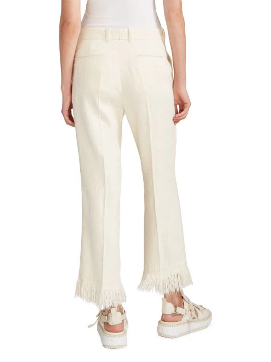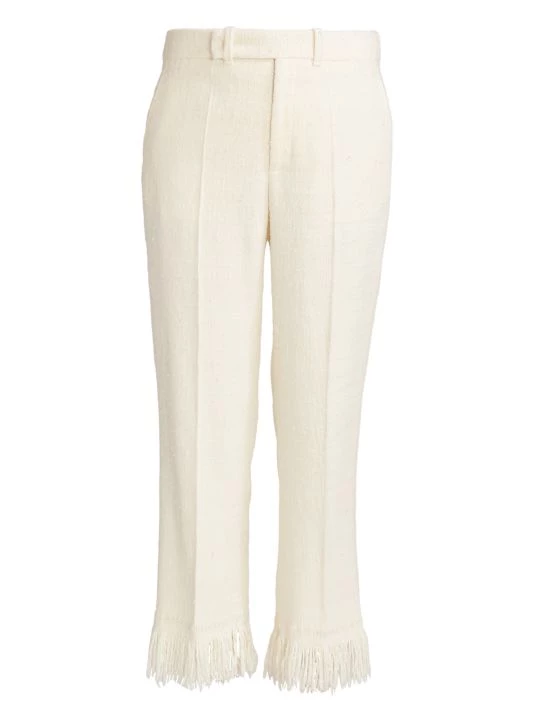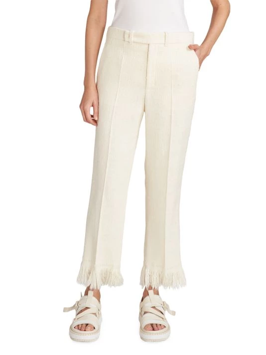 Founded in 1952 by Gaby Aghion, Chloé was established as an alternative to couture, appealing to the empowerment of women. From Creative Director Gabriela Hearst, this collection resonates with the tradition of the French house’s free-spirited identity with flowing fabrics, whimsical patterns, and boho-style designs. These mid-rise pants are enhanced with a silk fabrication and fringe cuffs.