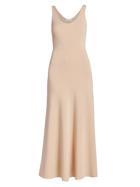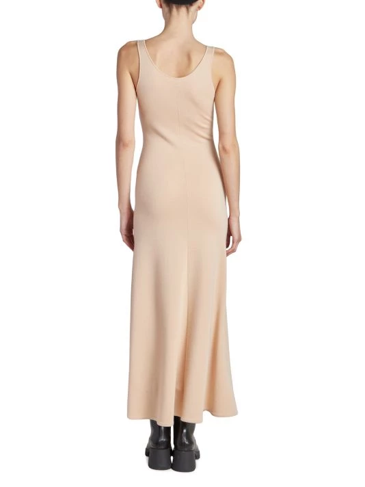Chloé’s collection puts an emphasis on reducing the negative impact of the fashion industry with the use of botanical dyes. Gabriela Hearst pays homage to the French house’s legacy through puff sleeves, oversized silhouettes, and mixed knits infused with the designer’s equestrian and boho-inspired looks. Knit from pure wool, Chloé’s sleeveless maxi dress boasts a plunging scoopneck and scoopback. Central seaming and a pleated, fluid skirt add dimension to this classic look.