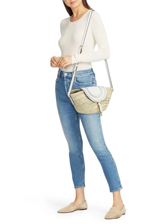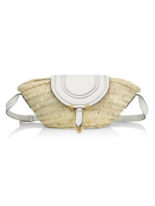 From the Marcie Collection. Detailed with decorative saddle stitching and hanging leather strips, Chloé’s crossbody bag flaunts a basket silhouette hand-woven from palm leaves. This Spanish-made piece is finished with a signature embossed logo at the front.