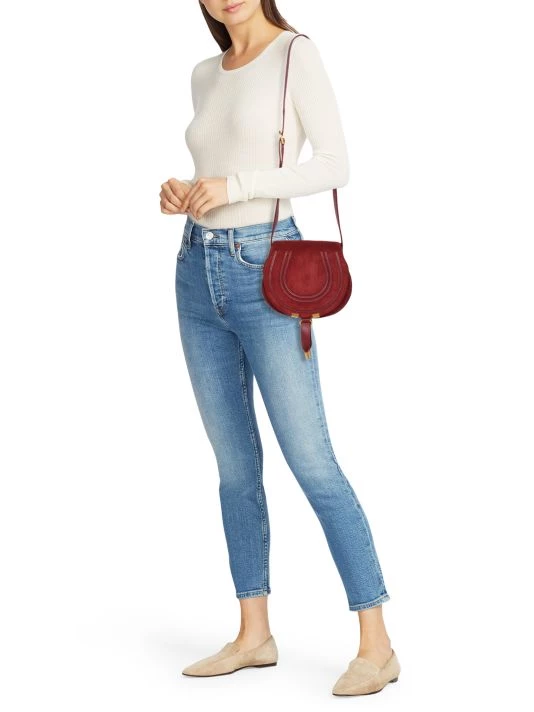 Combining a feminine allure with ’70s spirit, Chloé’s iconic Marcie bag is skillfully crafted of buttery-soft suede in Italy. The French label details this round silhouette with equestrian-inspired saddle stitching and signature tassels.