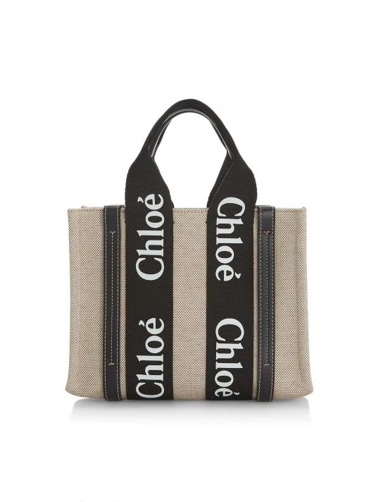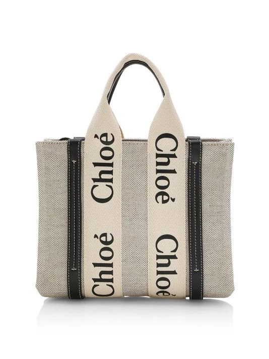 Logo-adorned straps and rich leather trim adds interest to this roomy canvas tote bag.