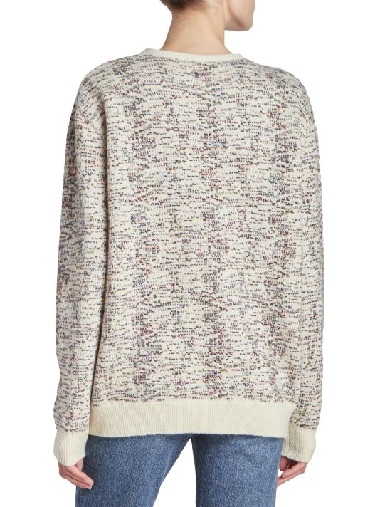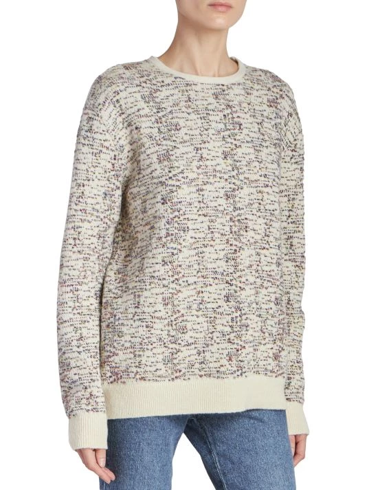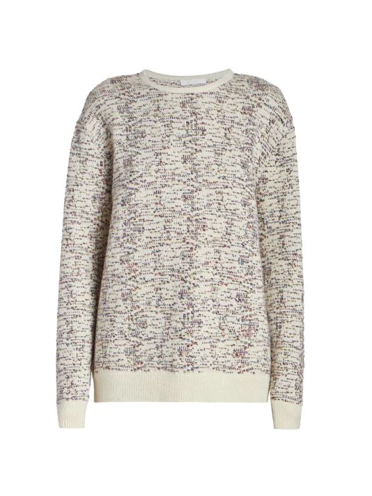 Chloé’s collection puts an emphasis on reducing the negative impact of the fashion industry with the use of botanical dyes. Gabriela Hearst pays homage to the French house’s legacy through puff sleeves, oversized silhouettes, and mixed knits infused with the designer’s equestrian and boho-inspired looks. Knit from a cozy cashmere and wool blend, this oversized crewneck sweater boasts a multicolor speckled outer and solid banded ribbed trim.