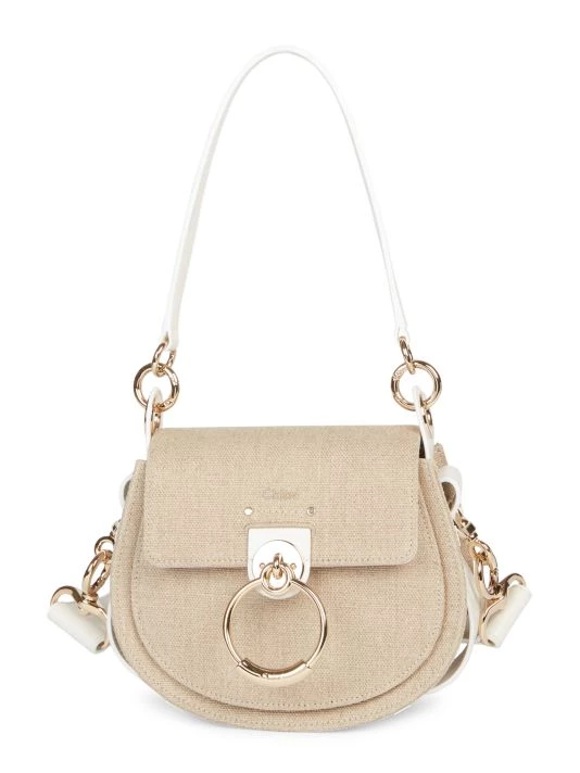 Made in Italy, Chloé’s Tess bag is crafted of luxurious linen and rich leather. This equestrian-inspired piece is highlighted with signature logo-engraved hoop hardware.