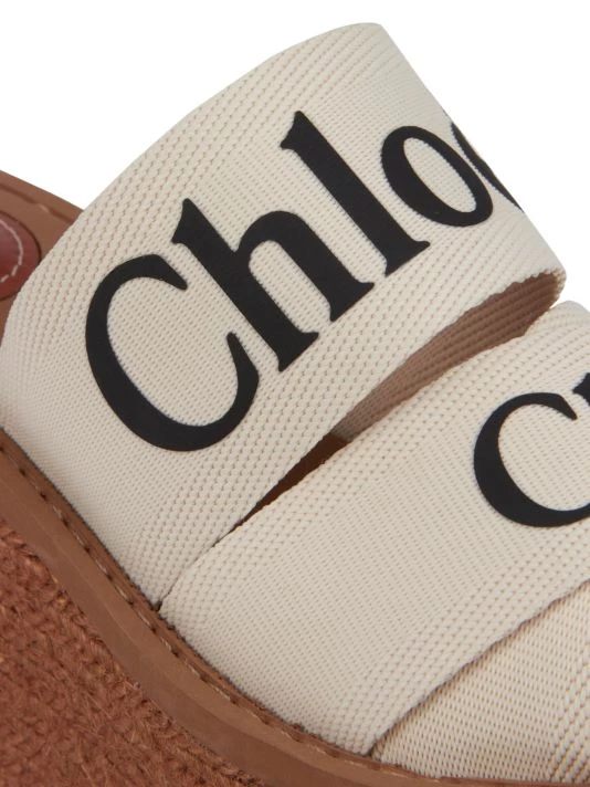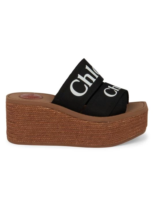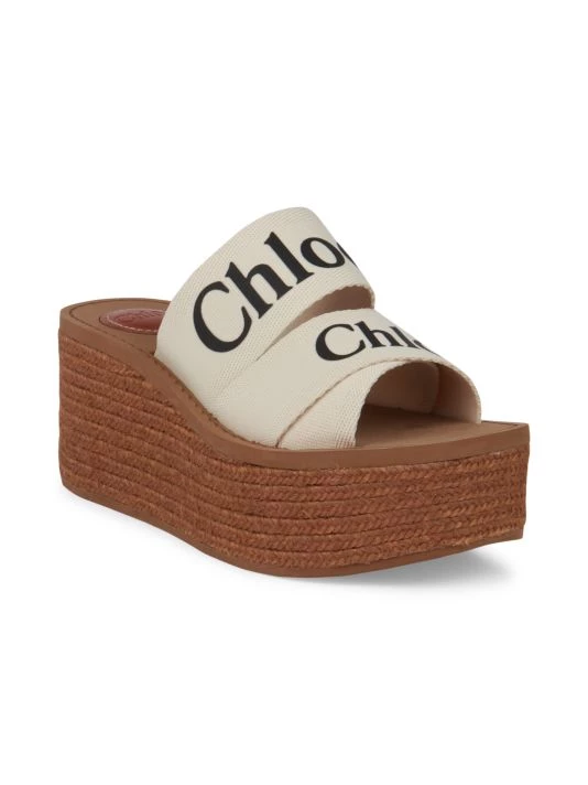 These beachy woven raffia platform wedges have a canvas logo vamp creating a chic summer look.