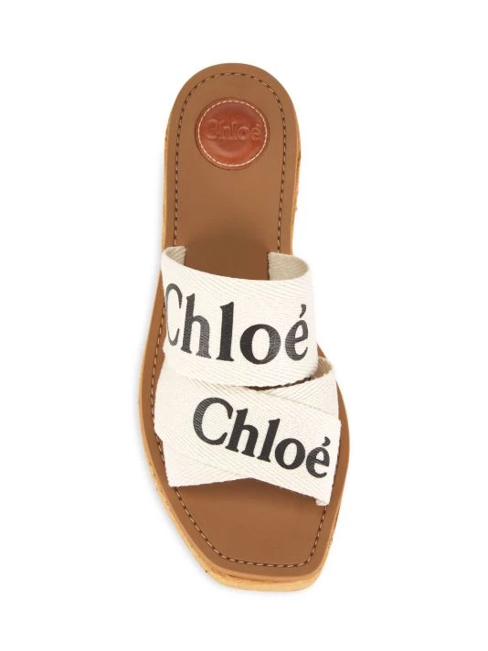 Chloé’s Woody open-toe espadrilles feature canvas upper stamped with the label’s namesake and braided-jute wedge heels.