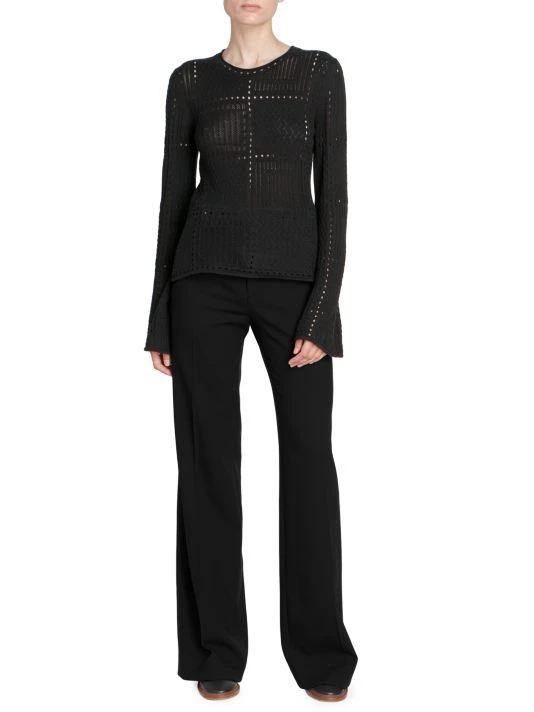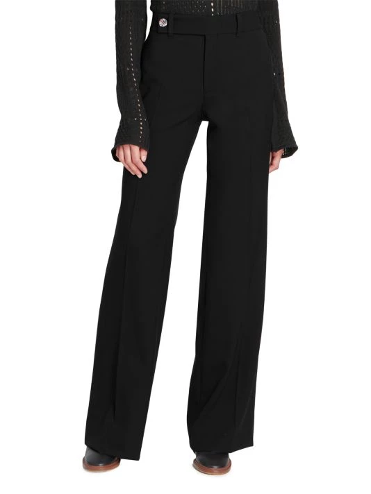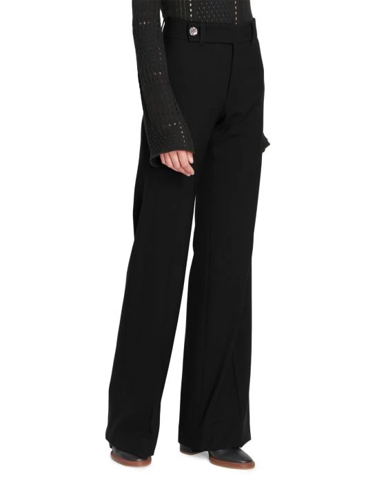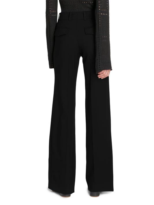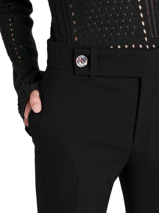 A pearlescent button closure finishes these stretch-wool boot-cut trousers.