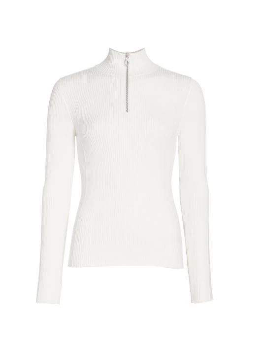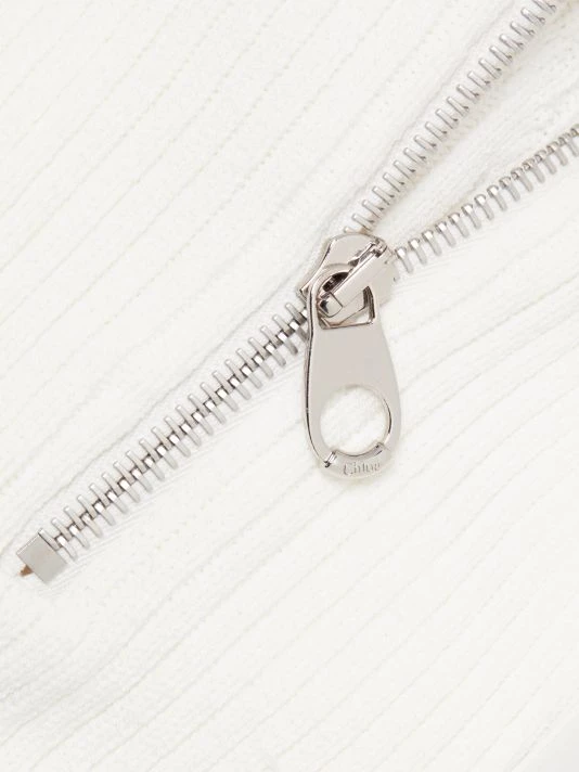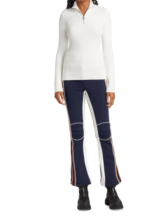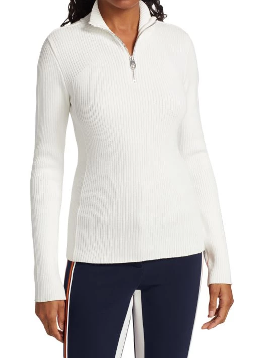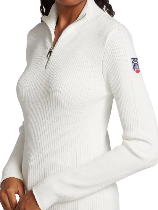 From the Chloé x Fusalp Collection. Rib-knit pullover sweater in a form-fitting silhouette with a quarter-zip front.