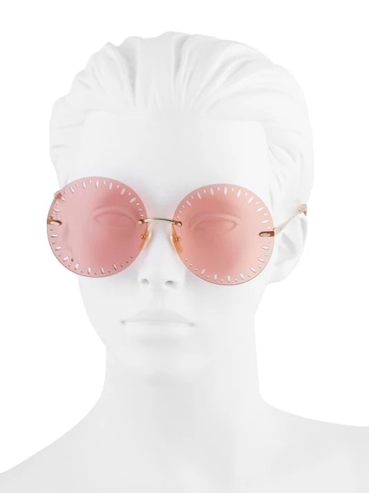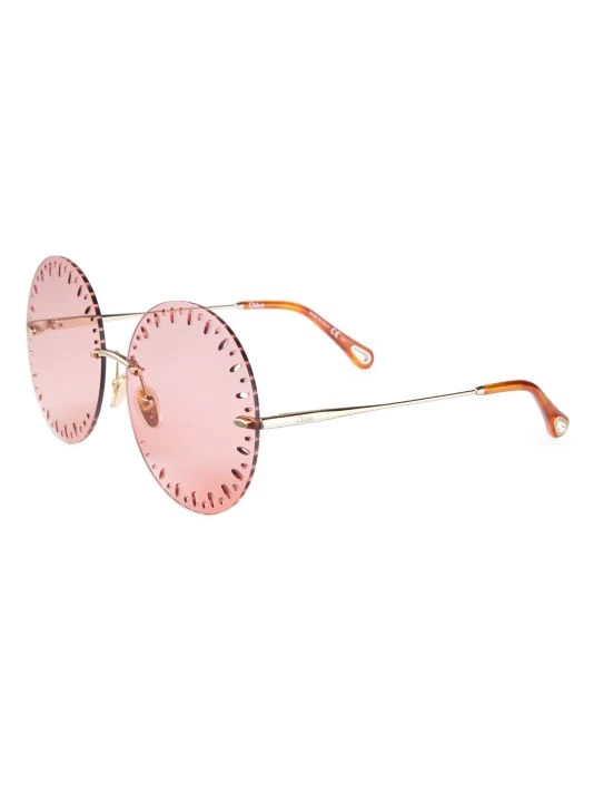 From the Ysé Collection. Flaunting a rimless round silhouette, Chloé’s sunglasses are detailed with perforated cutouts at the lenses. This Italian-made pair is finished with logo-engraved metal temples.